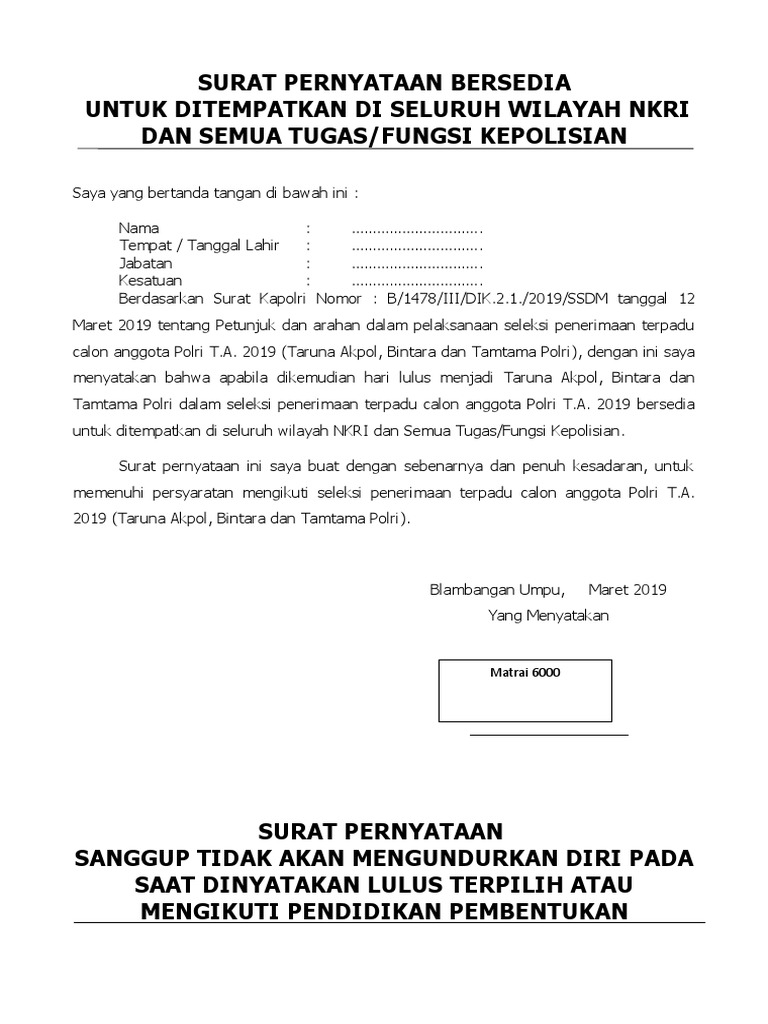 Contoh surat pernyataan bersedia mengganti biaya seleksi apabila mengundurkan diri doc surat pernyataan tidak mengundurkan diri dari tahapan seleksi marina dmrr academia edu from i2.wp.com demikian surat pengunduran diri kerja ini saya buat dengan penuh kesadaran serta atas keinginan sendiri dan tanpa ada paksaan dari siapa pun. Dengan ini menyatakan bersedia untuk mengundurkan diri apabila di kemudian hari terbukti melakukan tindakan indisipliner sesuai. From pelayananpublik.id surat pernyataan juga bisa digunakan untuk menimbulkan efek jera bagi seseorang yang melanggar aturan di suatu tempat. Demikian pernyataan ini saya buat dengan. Yang bertanda tangan di bawah ini demikian pernyataan ini saya buat dengan sesungguhnya, dan apabila saya mengundurkan diri setelah diangkat menjadi cpns kejaksaan ri maka saya bersedia menerima sanksi administrasi.